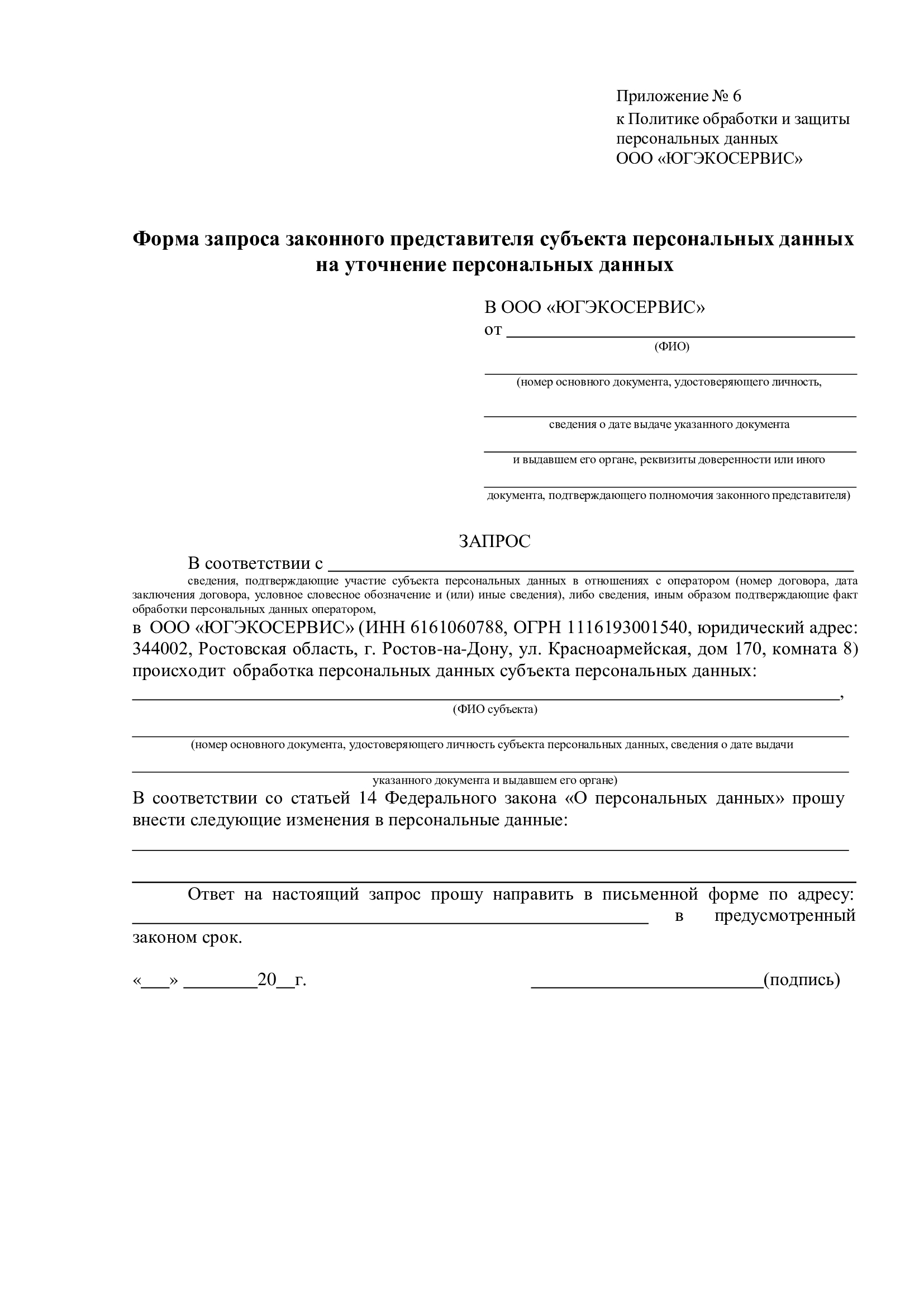 1.4.5. Субъект персональных данных имеет право обжаловать действия либо бездействие Общества, обратившись в уполномоченный орган по защите прав субъектов персональных данных (территориальное подразделение Роскомнадзора).